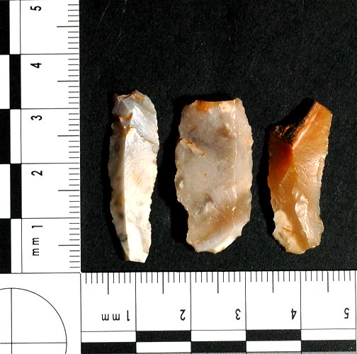 Three tiny blades struck for use as microlith blanks but not notched and taken to a later stage. It is possible they may have been used directly.